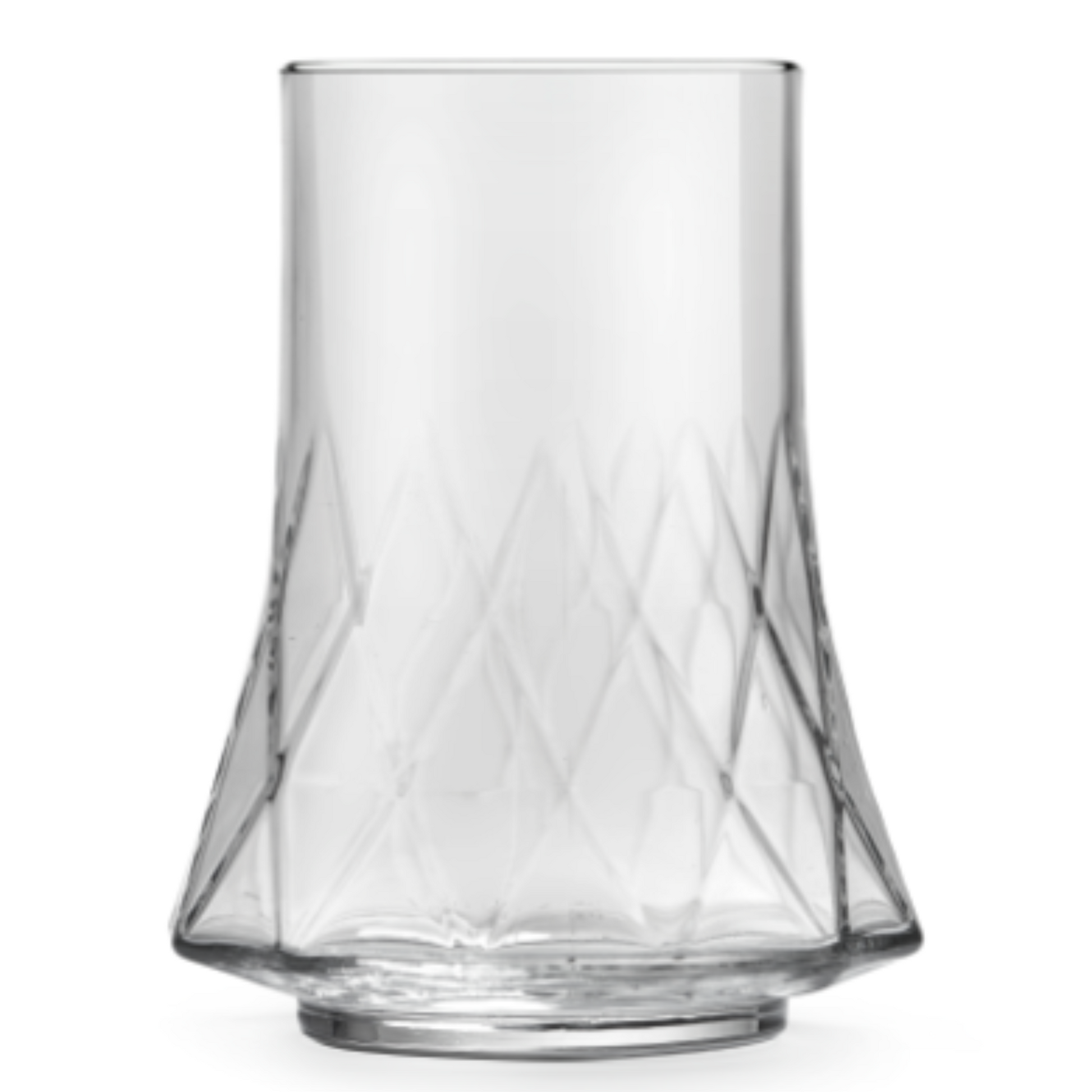 - Faceted cut-glass pattern adds visual texture and grip