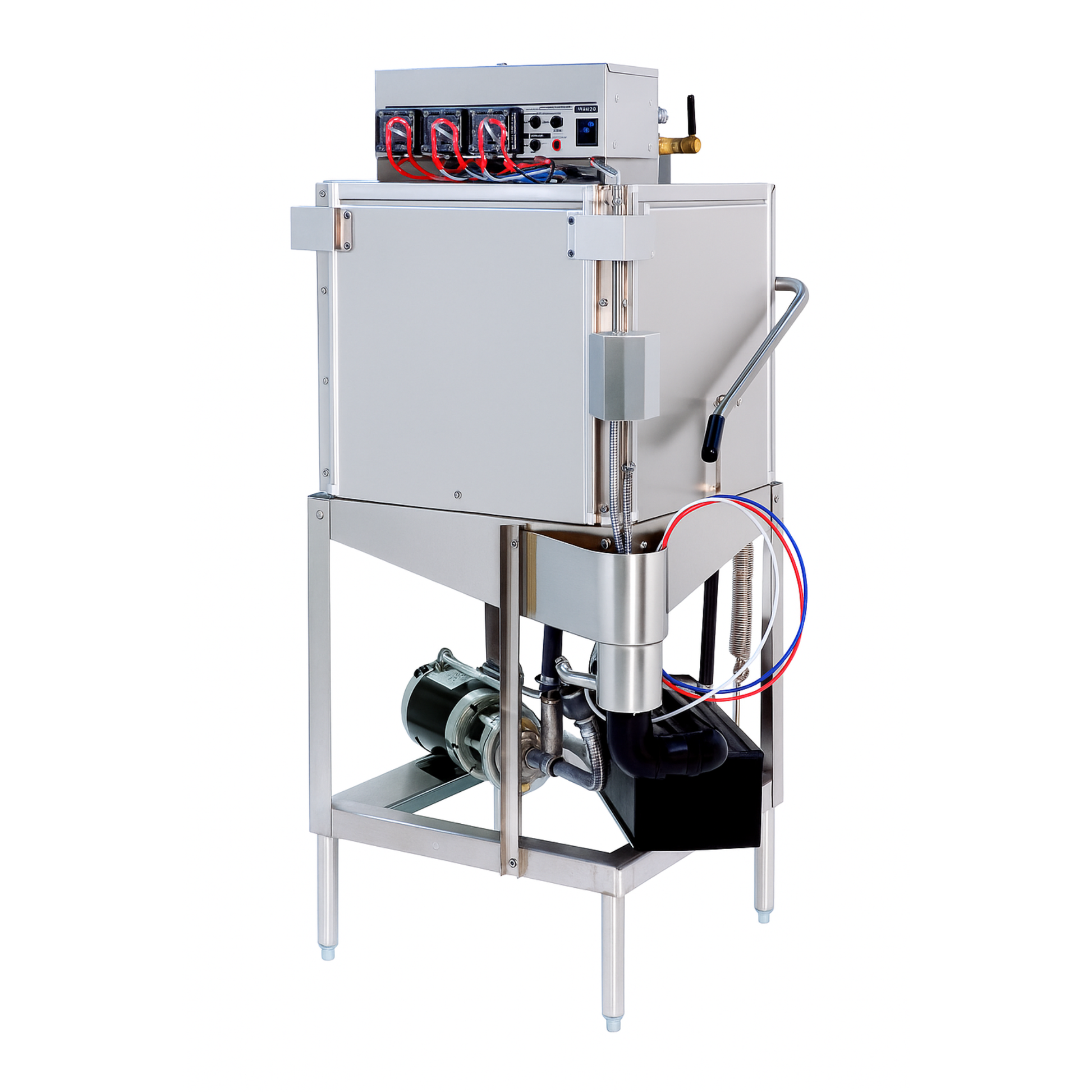 - Top-mounted controls with built-in chemical pumps and deliming system