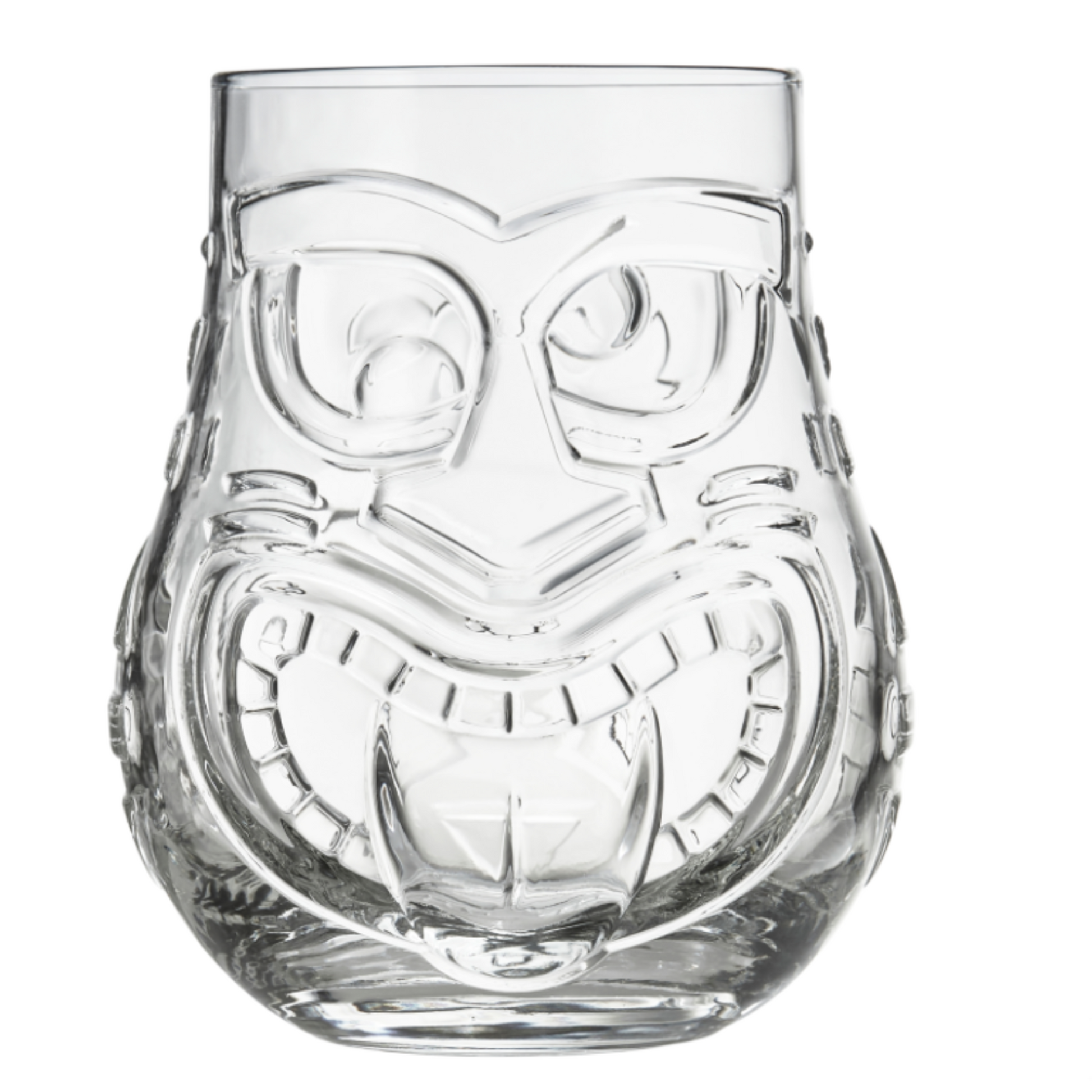 Tiki-themed, faceted tumbler holding 15.75 oz with split-texture styling for visual appeal and grip.