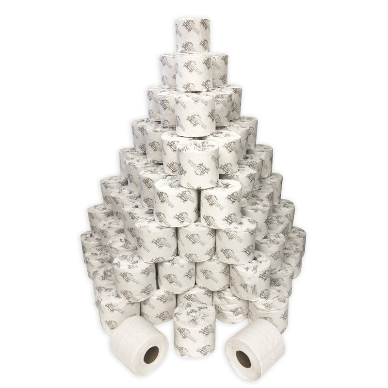 - Bath tissue, 2-Ply, 3.9″ roll width x 3.1″ sheet length